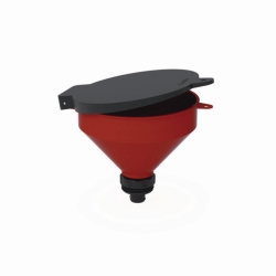 Trichter, mit Klappdeckel und Edelstahlsieb, zur Entsorgung von flüssigen Abfällen.
