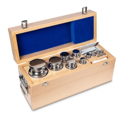 Gewichtssatz E1, Knopfform, im Holzkoffer