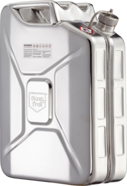 Für sichere Lagerung, Anwendung und innerbetrieblichen Transport brennbarer Flüssigkeiten. Explosionsgeschützt durch Flammensicherungen und Überdruckventile in Schraubkappen und Feindosierern (selbstschließend). Aus hochwertigem und chemisch beständigem Edelstahl V4A/V2A, elektropoliert, Dichtungen aus PTFE, ergonomische Tragegriffe. Platzsparende Bauform, z.B. in Sicherheitsschränken.