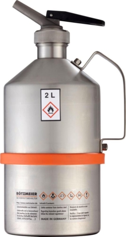Für sichere Lagerung, Anwendung und innerbetrieblichen Transport brennbarer Flüssigkeiten. Explosionsgeschützt durch Flammensicherungen und Überdruckventile. Aus hochwertigem und chemisch beständigem Edelstahl V4A, Dichtungen aus PTFE, ergonomische Handgriffe.